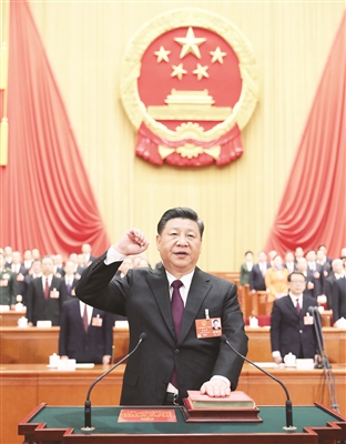 随后,新当选的全国人大常委会委员长栗战书、新当选的国家副主席王岐山分别进行宪法宣誓,新当选的全国人大常委会副委员长、秘书长进行了集体宣誓。