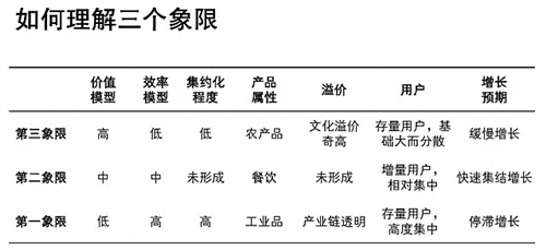 打个比方:第一象限如同去酒吧,需要浓妆艳抹,奇装异服;第二象限是你处在工作状态,穿着清爽得体;第三象限是穿着比基尼出场,要求身材、肤色等协调性统一。在一定程度上,第一象限和第二象限都在学习第三象限的价值模型。