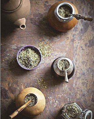 马黛本是冬青科的一种多年生木本植物,通常称它为巴拉圭草,树叶翠绿,呈椭圆形。每年的4—8月,是马黛茶丰收的季节。南美洲人把绿叶和嫩芽采摘下来,经过晾晒、烘烤、发酵和研磨等工序,就制成了芳香可口的马黛茶。马黛茶味苦涩,在冲泡时一般都要加入些草莓、苹果、柠檬、橙子等不同水果汁,以降低苦涩味。