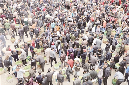 茶山春茶采摘如火如荼,茶叶交易市场也是车水马龙、熙熙攘攘。随着春茶采摘高峰的到来,清明前后每天都有大量的茶青涌入点头镇茶花交易市场,各茶企纷纷展开声势浩大春茶采购,茶青交易战犹酣。据市场管理人员曹荣友介绍,今年春茶上市交易高峰期已经持续一周左右,每天都有两次的交易高峰,现在市场上的春茶需求还是很大。从目前在交易市场上市春茶的交易情况来看,每天基本保持300吨的茶青叶上市交易。今年春茶价格与去年同期相比,价格普遍有所上涨,增幅30﹪左右,再创历史新高,交易高峰期预计还将持续一周时间左右。