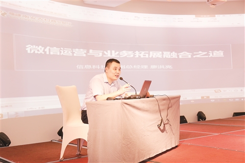 福建南安农商银行信息科技部副总经理廖洪亮,分享了“微信运营与业务拓展融合之道”。他以南安农商银行的“七彩商圈”“七彩积分”“金融微店”为例,详细讲解了南安农商银行的新媒体营销策略。据介绍,自2014年上线以来,南安农商银行以微信为载体的“金融微店”,微信关注用户已突破37万人,吸引了当地589家优秀商户入驻,微信月均阅读量均近百万次,每篇平均阅读量为6667次。廖洪亮认为,成功的新媒体营销必须具备良好的IT支撑、团队分工和运营机制。未来,该行微信平台还将在电商布局、网点升级方面发挥重要作用。