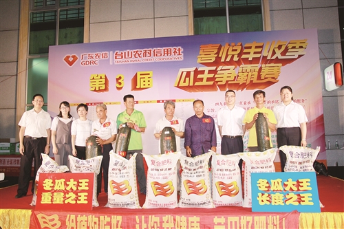 图为台山联社举办“瓜王争霸赛”,与瓜农共享丰收喜悦。