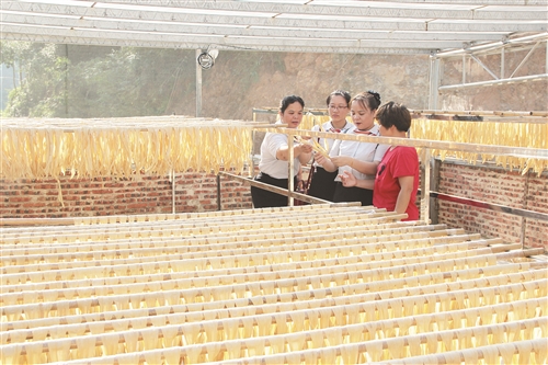 图为广宁联社客户经理深入腐竹加工厂调研。