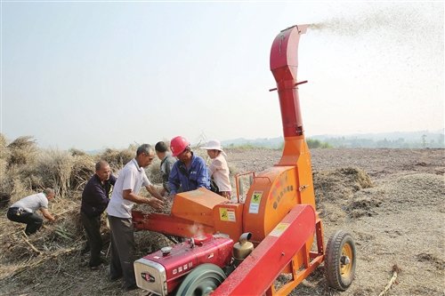 今年夏收季节,四川省内江市东兴区加大了农业机械化和秸秆粉碎还田技术推广力度。东兴区政府集中采购秸秆粉碎机并配发至各乡镇,并组织专业队伍入村帮助农户进行秸秆集中收集处理。目前,该区已设立集中处理点400余个,收集处理油菜秸秆2万余吨,有效控制了秸秆露天焚烧行为,进一步改善了生态环境,减少了大气污染。图为东兴区永兴镇莲花村村民利用秸秆粉碎机对油菜秸秆进行集中处理。