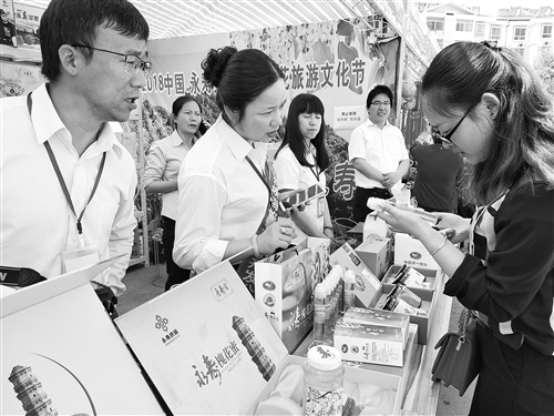 近年来,陕西省永寿县供销合作社主动积极整合县域农产品资源,通过统一包装、统一设计等方式,为当地特色农副产品“穿上了华丽的外衣”,提升了农副产品附加值,助农增收。图为5月13日该县供销合作社工作人员在永寿县第十五届槐花旅游文化节宣传推介槐花蜂蜜产品。