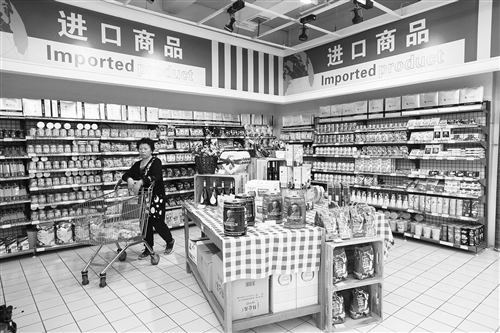 5月8日,山西太原一超市,市民正在选购进口商品。中国外贸4月重现顺差。当日,中国海关总署公布的最新数据显示,4月中国进出口总值2.36万亿元,同比增长7.2%。其中出口增长3.7%,进口增长11.6%;贸易顺差1828亿元,收窄27%。