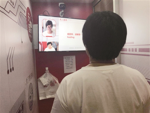 京东X无人超市借助物联网、互联网、人工智能、生物识别、视觉分析、云数据计算等多项先进技术,打造的全程自助购物科技旗舰店。位于潍坊农村商业银行潍城支行一楼营业大厅,占地面积100多平方米,店内供应食品、饮料、日用百货、进口产品等700多种商品。图为消费者刷脸支付商品。