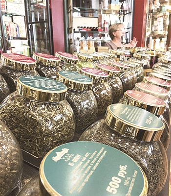 走进这家茶叶店,金发碧眼的营业员热情地招待着每一位顾客,店里最醒目的地方用玻璃瓶子装着中国茶叶。云南的普洱,浙江的铁观音,安徽的毛尖……几乎囊括了中国所有的茶叶品牌。品尝了一杯茉莉花茶,清香扑鼻,香甜润喉,和国内的茉莉花茶味道差不多。