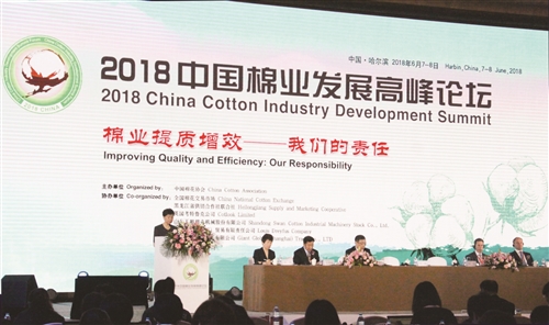 本报讯 (记者 于璐娜)6月7日,由中国棉花协会主办的2018中国棉业高峰论坛在黑龙江省哈尔滨市开幕。中华全国供销合作总社党组书记、理事会主任王侠出席开幕式并致辞,中国棉花协会会长戴公兴做主旨发言,黑龙江省人民政府副省长刘忻致欢迎辞。