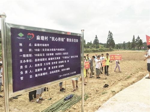 据了解,正大镇麻塘村是松桃县供销合作社帮扶的贫困村。松桃县社根据村情分析,因地制宜,在麻塘村创建“民心供销帮扶示范田”,由党员干部、帮扶人、贫困户及村民同心同力把闲置荒地变成帮扶田。帮扶示范田共18亩,一期规划种植豇豆、辣椒等,农产品将由县社“苗家购”电商团队销售,所得收益作为麻塘村的集体经济收入,其中,50%收入用于麻塘村两委作为脱贫攻坚工作经费,50%用于麻塘村特别困难的贫困户的帮扶资助。同时,贫困农户可以通过流转闲置荒地及务工来获得一定收入。