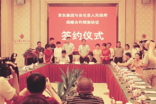 京东集团是自营式电商企业,业务涉及电商、金融和物流三大板块。活动现场签署了京东集团与安化县政府战略合作框架协议、安化黑茶官方旗舰店进驻京东商城合作协议。京东集团与安化县的合作将围绕智慧物流配送体系、“互联网+农业”应用示范中心、“互联网+金融”、“互联网+创新创业”、“互联网+扶贫”、“互联网+政府采购”、“互联网+新通路”、“互联网+云仓服务”等领域开展全方位、多层次的战略合作。
