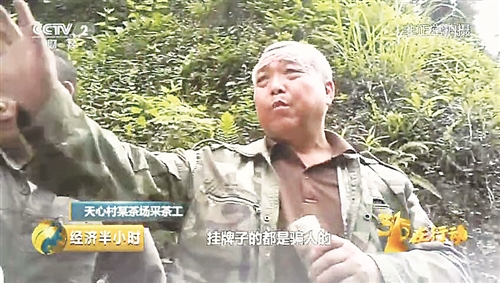 在牛栏坑所在的天心村,记者认识了村民阿兰,她带着记者来到牛栏坑。一进牛栏坑,四处遍布的茶企广告牌立即映入眼帘,这些牌子上写的大多是某企业“牛栏坑基地”之类的字眼。阿兰说,插牌子的这些企业并非真的在牛栏坑拥有茶园,而是外地企业与天心村的茶农达成了合作协议,给钱就让插牌子。福建省武夷山市武夷镇天心村村支书也说,这些插牌子的商人不一定从牛栏坑买茶叶,立一个牌子就是为了做宣传找噱头,而且牛栏坑的种植面积也就三十多亩。而记者发现,武夷山核心茶区里的牛栏坑面积,也只有二十亩左右,年产肉桂岩茶也就一千多斤。