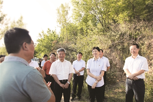 20年前,延安在全国率先启动退耕还林工程试点,变革命年代“兄妹开荒”为“兄妹造林”,并作为一项战略任务,多年坚持推进,实现植被覆盖率从2000年的46%提高到2017年的81.3%,把陕西的绿色版图向北推进了400多公里。延安大地经历了一场由黄到绿、由绿变美、由美而富的深刻转变,在黄土高原上创造了绿色奇迹。王侠指出,延安通过退耕还林生态文明建设实践,生动诠释了习近平总书记“绿水青山就是金山银山”的理念,充分印证了总书记生态文明思想的科学性和正确性,坚定了我们矢志不渝抓好生态环境建设的信心和决心。延安退耕还林取得显著成效,还得益于正确的策略和方法,处理好了恢复生态和保护农民利益的关系,发扬了“钉钉子”的精神,一任接着一任干,一张蓝图绘到底。