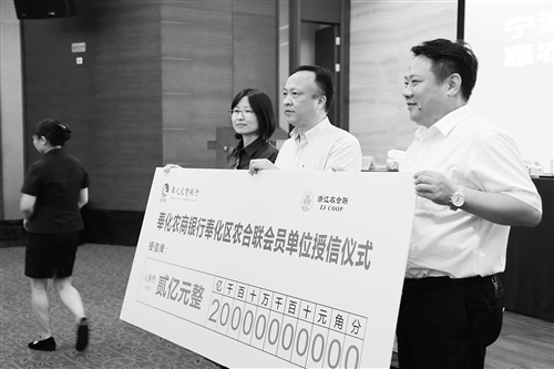 据了解,奉化区农合联从农民最集中、最急迫的金融需求出发,于去年9月与奉化农村商业银行、人保财险宁波分公司正式签约,在全省首创了基于服务全区565家农合联会员单位生产经营的“农信盈”惠农金融服务,有效破解了“贷款难、贷款贵、担保难”等诸多融资瓶颈。