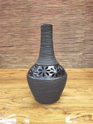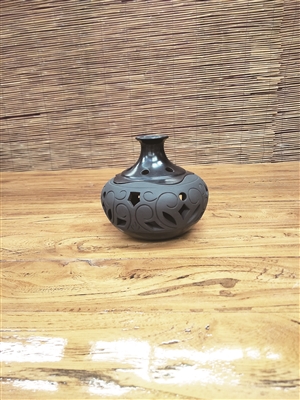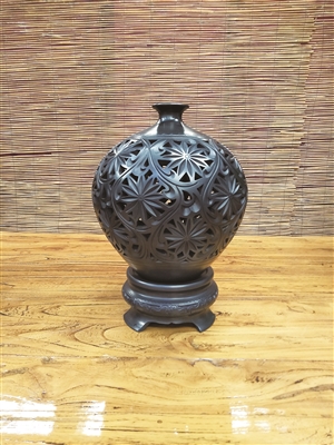 金宇黑陶选用得天独厚的永定河古道河床下纯净而细腻的粘土为原料,在继承传统手工雕刻技法的同时,又与现代工艺有机结合,其作品经手工淘洗、陈腐、拉坯、晾晒、修整、压光、绘画、雕刻等工艺,最后以独特的无釉无彩碳化窑变的古老工艺烧制而成的。