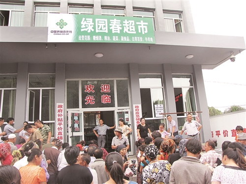 为了平抑物价,让居民吃上低价放心菜,2011年,蒋玲玲从200余家农民专业合作社里选择了6家实力强、信誉度高的合作社组建了绿园春公司。“得通过公司化运营的方式,把蔬菜、牛羊肉引入综合服务超市,减少流通环节,才能降低物价。”蒋玲玲决定成立绿园春平价直销店,把平价食物送到百姓身边。从选点到上货,再到管理模式的确定,她都参与其中。不到一个月,10个绿园春平价直销店出现在了察布查尔县县城的社区里。