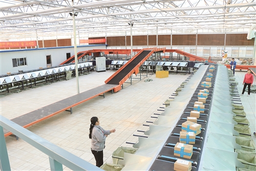 在标准化电商仓储区,花卉大棚告别传统种植模式,建设国内外花卉流通中转区、资材配送区和标准化实施区,实现了“平台选购——线上下单——中转分拣——打包出货”一站完成。