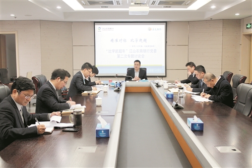图为江山农商银行领导班子研讨该行发展战略和发展路径。