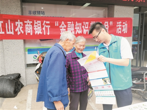 图为江山农商银行“亲近银行”为老年客户提供金融知识宣传服务。