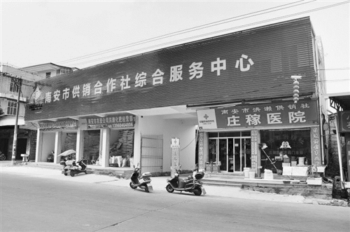 南安市洪濑镇旧市场街头,原来的洪濑镇供销合作社街头肥料部已焕然一新——横跨6家农资网点门面的南安市供销合作社综合服务中心红色牌匾规范醒目。