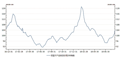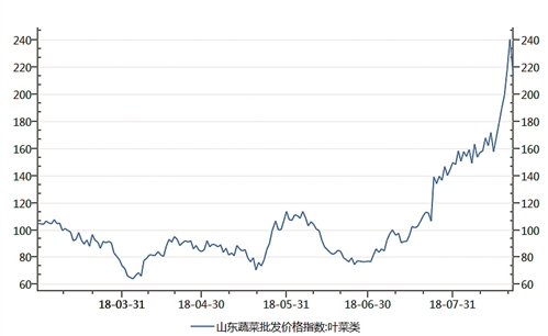 受6月底-7月初的暴雨灾害及7月中下旬-8月上旬以来高温干旱的影响,2018年三季度全国蔬菜生产形势受到严重考验。一方面高温天气降低蔬菜生长过程中的呼吸作用,蔬菜生长速度明显放缓。另一方面,阴雨天气及局部地区暴雨天气导致蔬菜保鲜、储运难度较大,成本提高。再加上部分蔬菜流通经纪人和批发商趁机抬价,导致蔬菜价格快速走高。