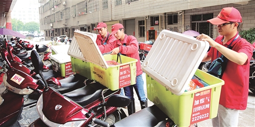 据介绍,为了打响高效快捷的招牌,即送网自建物流配送体系,配备了电动配送车、摩托车100多辆,小货车4台,员工(含配送人员)也从最初的10余人增加至200多人。为提高配送效率,即送网还定制研发了一整套应用软件系统,推出网页、手机APP、微信公众号等客户端供消费者多渠道选择;推出配送APP,应用地理定位技术,实施配送人员抢单和实时就近配送,提高配送效率。消费者网上下单后,物流配送员会立即根据自身实时所在位置及“30分钟送达”的要求,在手机版配送系统的后台进行“选择性抢单”。经捡单人员按订单从货架上取货、打包、然后交由配送员,在30分钟内送达客户手中,做到单单有保证。