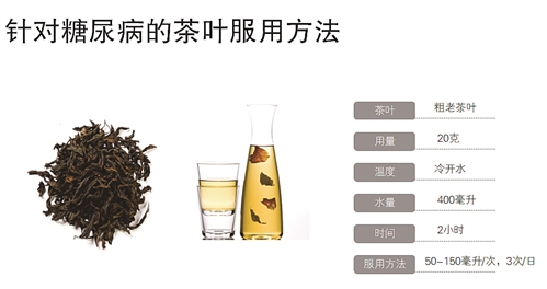 在中国和日本的民间,有一种治疗糖尿病的配方:用粗老的茶叶茶梗泡水喝抑制糖尿病,由于茶多糖在高温下的稳定性不好,所以大多用冷泡法。