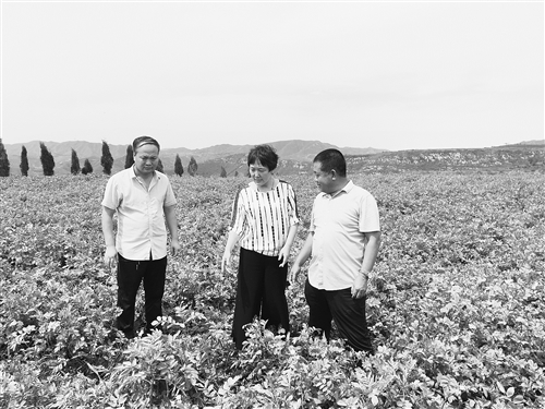 山西省平定县西头岭村产出的土豆口感极好,在当地乃至阳泉市都小有名气。今年,平定县供销合作社采用“合作社+农户”的模式,组织西头岭村农民大量种植有机土豆。今年全村种植土豆1000余亩,仅土豆可户均收入2000元。图为县社带领农业技术员在田间检查土豆生长情况。