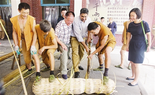 扎曼一行参观了白沙溪黑茶博物馆、生产车间、千两茶晾晒场,详细了解了白沙溪茶厂发展历史以及黑茶制作工艺。参观千两茶晾晒场时,扎曼参赞看到精彩独特的千两茶制作,激动不已,现场与公司副总经理肖益平共同亲身体验踩制,体验千两茶制作的神奇魅力。白沙溪作为中国黑茶标志性品牌,愿用这一片片树叶续写巴中友谊,升华巴铁关系,将更好的黑茶奉献给世界各国人民。