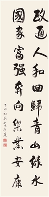 展出作品主题为歌颂大兴区砥砺五年发展变化。让乡村民居街道与高雅的书法艺术融为一体,让福照家门的小院落,既有梨花、玉兰的映衬,又有书法作品点睛;既弘扬社会主义核心价值观,又普及中国书法传统文化,正是本次展览的创新所在。展览简朴大方、高贵典雅,乡村文化氛围大幅提升。现将入围作品分期刊登,以飨读者。本期刊登书法展的第四期。