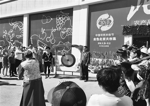 本报讯 9月23日,首届“中国农民丰收节”在全国各地农村缤纷登场。京城的“农民丰收节”洋溢着浓郁“京味”。北京首届“中国农民丰收节”流通端活动在北京盛华宏林粮油批发市场以“金色北京大市集”为主题鸣锣开幕。鸣锣者,是这里农民与农产品流通业的代表——北京朝阳区王四营村党支部书记张文通和北京盛华宏林市场总经理吴玉芝。
