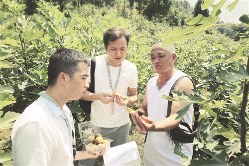 章荣炳是这块基地的负责人,2013年从县教育局工作岗位退休后便带领村民试种无花果,如今果园已有10余亩,年产值达200余万元。“8月中旬开始无花果秋果丰收,如果销路不畅,很多熟果就会被鸟儿和蜜蜂侵食。”章荣炳最担忧的就是销售。