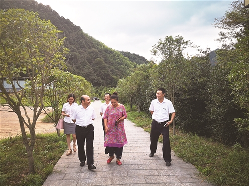 图1为广信农商银行党委书记、董事长钟超(左一)走访五府山中华蜜蜂谷。