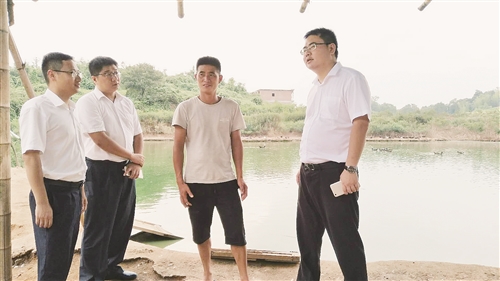 图3为广信农商银行客户经理走访徐坞村村民梁勇的养鸭场。