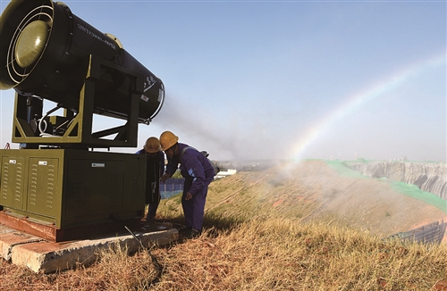 安徽六国化工股份有限公司在此前投入2000余万元实施磷石膏堆场综合整治项目。近期,公司又投入逾150万元,对磷石膏堆场顶部非作业面实施防尘网覆盖,增设雾炮、喷淋设施,对作业区和道路进行喷雾降尘,从而抑制扬尘现象,提升区域环境质量。图为该公司员工正在检查雾炮设施运行情况。