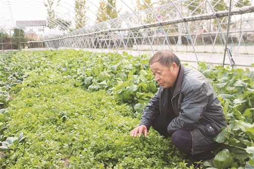 “我没有种过蔬菜,心里没底,就经常到超大基地找师傅讨教,跟在后面学。怎么育苗、怎么施肥,学了两年的露天蔬菜种植,积累到一些经验,胆子才大些。”2008年,景东波开始搭大棚,种植青椒、西兰花等大棚蔬菜。“花甲之年”的他由此开始了新一轮的创业历程。