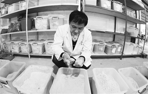 11月17日,在广西桂林市平乐县同安镇顺隆农业专业合作社,技术人员在查看艾产品质量。近年来,同安镇在脱贫攻坚中,立足当地实际,发展“黄金艾”种植,成立艾草种植专业合作社,引导贫困农民发展特色中草药种植,实现抱团发展,合作社还提供岗位给贫困户就业,贫困户每月务工收入达1500元至2500元。同时,当地政府在深加工技术、项目、政策等方面进行扶持,研发出的艾茶、艾香、艾足浴粉等系列产品,深受消费者的青睐,增加了农民收入,带动了当地贫困群众脱贫。