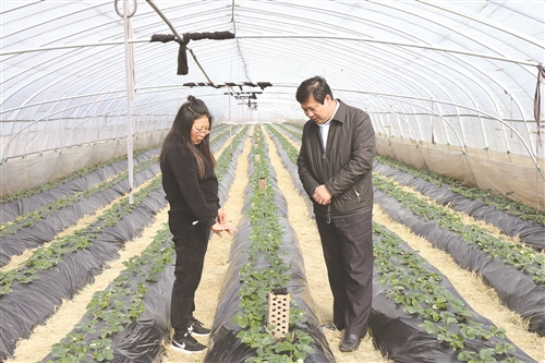 图1为丹阳农商银行董事长田贵荣(右)走访营销新型农业经营主体。