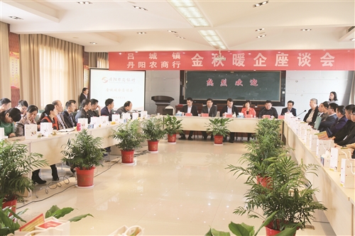图2为丹阳农商银行主动对接小微客户,举办“金秋暖企座谈会”。