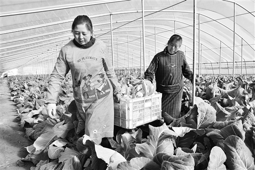 11月22日,河北石家庄新乐市官庄村农民正在收获菜花。近年来,新乐市化皮镇积极引导农民进行“公司+合作社+农户”的种植模式调整产业结构。截至目前,全镇注册的农业种植公司、合作社18家,黄花菜、早熟葡萄、吊蔓西瓜等特色种植5000多亩,使农民走上致富路。