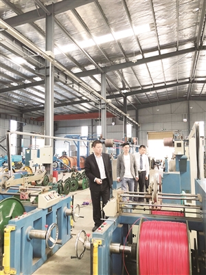 图1为三峡农商银行微贷客户经理在湖北龙狮节能环保特种电缆有限公司开展贷款调查。