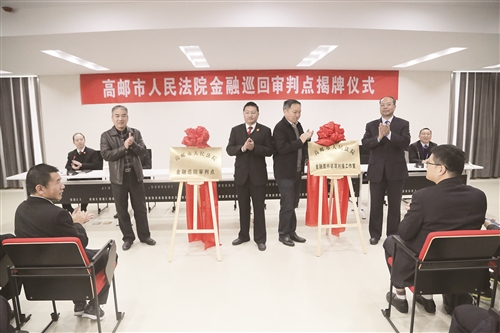 11月19日,江苏高邮农商银行举办了“高邮市人民法院金融巡回审判点”和“高邮市人民法院金融案件诉调对接工作室”驻点揭牌仪式。
