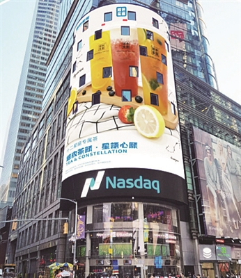 11月23日, 中国创意概念型新茶饮品牌银色星座荣登美国纳斯达克大屏。在地球的另一端,世界繁华的瞩目中心,兼具多元化文化色彩的新茶饮品牌银色星座,正式向世界发声,中国茶饮饮品乘风踏浪超越碳酸饮料席卷全球,与全世界茶客分享来自银色星座茶的别具匠心与星座奥秘。