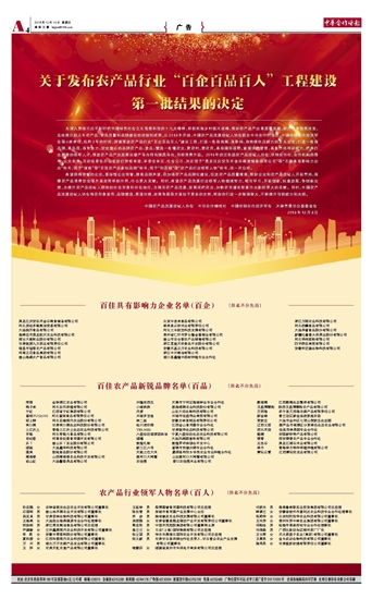 关于发布农产品行业“百企百品百人”工程建设第一批结果的决定