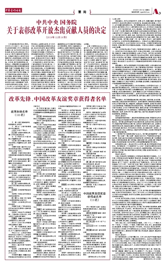中共中央 国务院关于表彰改革开放杰出贡献人员的决定