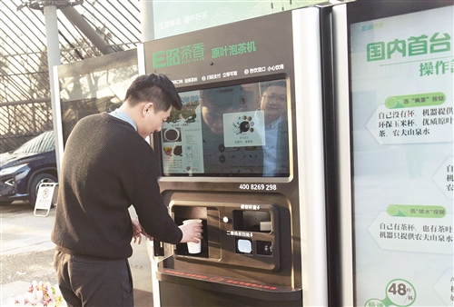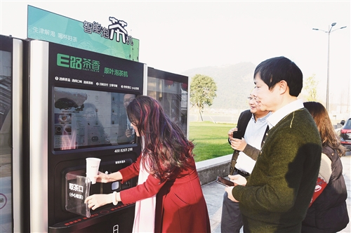 1月18日,两台“智能泡茶机器人”在浙江杭州萧山湘湖景区投入运行,“智能泡茶机器人”从手机扫码选购,到呈上一杯热气腾腾的现泡原味茶,只需短短45秒钟。能快速解决人们在户外对现泡热茶的需求。