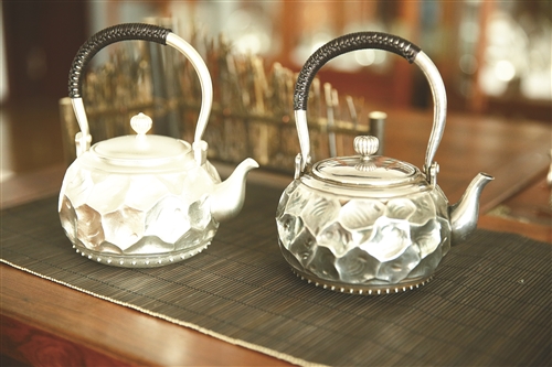 从一块银板,到一件精美的银壶作品,需要经过化银压板、制胎、錾刻、焊接组装、打磨抛光等多道工序。压板时,银料纯度越高就越容易起泡,加铜后就基本不存在这个问题。錾刻时,银料纯度越高表面越“发肉”,錾刻工作量会增加很多。焊接时,银料纯度越高焊接难度越大,为保证成品只能使用高纯度焊药。打磨抛光时,纯度越高越容易出现划痕……