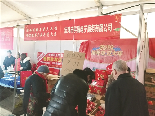 本报讯 1月22日上午,由陕西省供销合作社主办,陕西供销电子商务集团、西安解放门街道办事处承办,各县域电商公司协办的2019年陕西供销年货大展销活动在西安正式启动。本次活动以“服务城乡、质优价廉、安全祥和、生态健康”为主题,旨在丰富城乡居民节日供应,营造温馨舒适、品种齐全,质优价廉、安全可靠、热闹红火的节日购物气氛,保障春节年货市场供应。