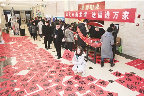 去年农历腊月二十,山西孝义农商银行员工作为志愿者参加了孝义市新春书画展暨送福临万家活动。