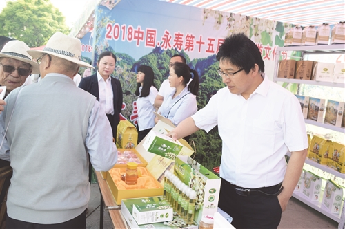 在整个展销大厅,记者看到,永寿槐花蜜赋以“愿花长在人永寿”的诗境;永寿核桃赋以长孙无忌历史名人文化元素,称为“长孙世家智慧果”;永寿苹果赋以著名戏曲家任哲中著名曲目文化元素;五谷杂粮赋以人民公社历史文化元素,被称为“杂粮公社”;永寿手工挂面赋以“寿”文化元素,称为长寿面……,在李华等供销合作社人的点拨下,这一件件农产品拥有了文化的灵魂,成为供销合作事业发展的推进器。